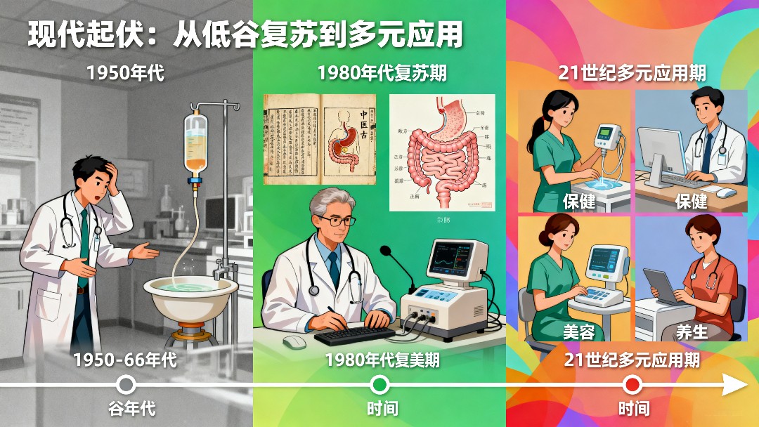 20世纪末,大肠水疗因其兼具治疗与保健的双重价值,逐渐受到医疗、保健、美容、养生等多个行业的广泛关注,逐步替代传统灌肠方式,被广泛应用于结肠炎、便秘等肠道相关疾病的临床治疗,以及日常肠道保健领域,成为现代肠道健康管理的重要手段之一。